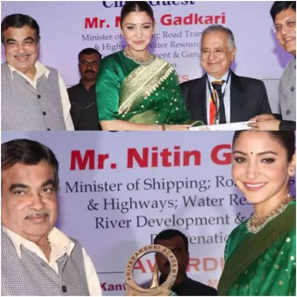 अभिनेत्री और प्रड्यूसर अनुष्का शर्मा के अवार्डस की गिनती में एक और अवॉर्ड शामिल हो गया है। अनुष्का शर्मा को 34वें प्रियदर्शिनी अकादमी ग्लोबल अवॉर्ड्स में स्मिता पाटिल अवॉर्ड से नवाजा गया। यह अवॉर्ड केंद्रीय मंत्री नितिन गडकरी के हाथों से अनुष्का शर्मा को दिया गया। अवार्ड फंक्शन के दौरान अनुष्का शर्मा बेहद खूबसूरत दिखाई दे रही थीं। उन्होंने ग्रीन कलर की साड़ी पहन रखी थी। उनका यह ट्रेडिशनल लुक सोशल मीडिया पर खूब वायरल हो रहा हैं।