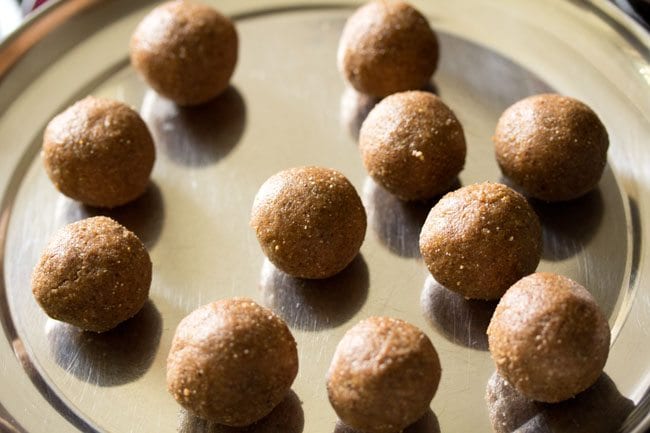 – तैयार मिश्रण से लड्डू बना लें.