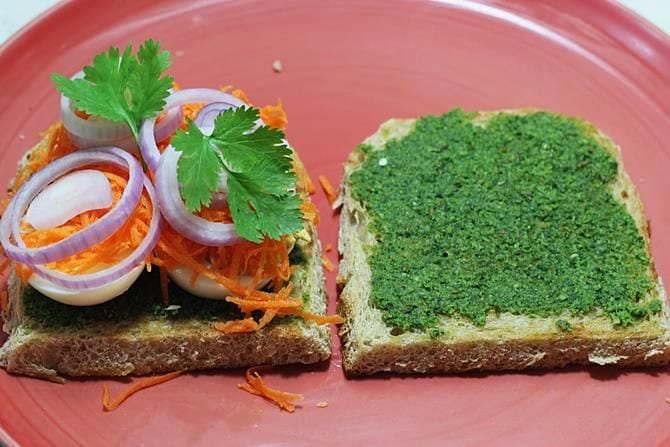 – ब्रेड की एक स्लाइस पर पहले चटनी लगाएं. फिर इस पर एक-दो स्लाइस अंडे की रखें. ऊपर से काली मिर्च पाउडर छिड़के और इस पर दूसरी ब्रेड स्लाइस रखें.