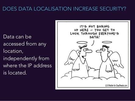 भारत में डेटा होने का मतलब यह नहीं है कि घरेलू कंपनियां इस डेटा तक पहुंच पाएंगी। स्थानीयकरण डेटा केंद्र, भारत में क्लाउड कंप्यूटिंग उद्योग के विकास में सहायता कर सकता है, लेकिन व्यापक सार्वजनिक नीति के मामले में ऐसा दृष्टिकोण अत्यंत मायोपिक है।