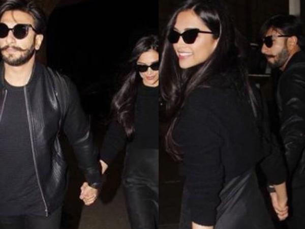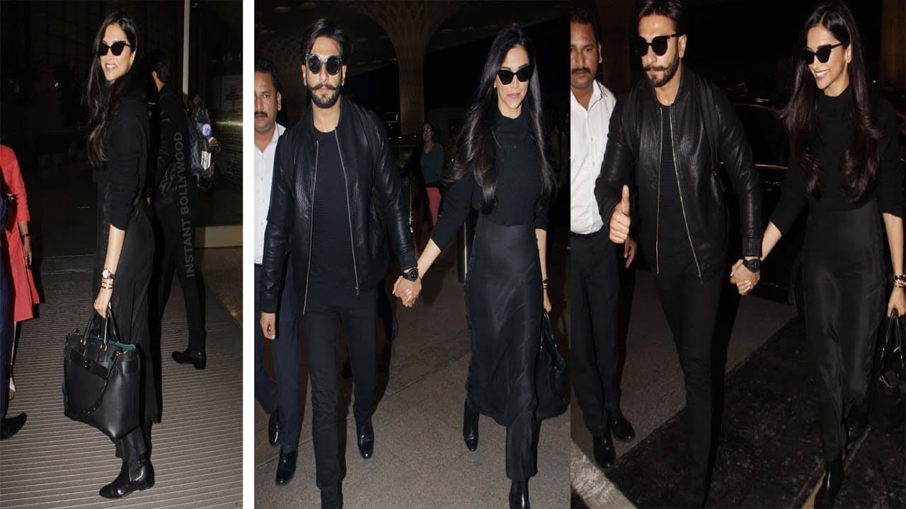 एयरपोर्ट पर दोनों का हाथ एक दूसरे के हाथ थामे नजर आए. इस दौरान दोनों ने एक बार फिर मैचिंग आउटफिट पहन रखे थे. एक तरफ रणवीर ने ब्लैक डेनिम के साथ ब्लैक जैकेट और टी शर्ट कैरी कर रखी थी, वहीं दीपिका ब्लैक लेदर पेंसिल स्कर्ट के साथ हाई नेक स्वेटर में नजर आईं.