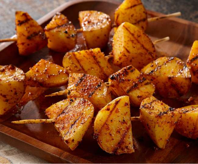स्क्वुयर्स में आलू लगाएं और ग्रिल करें.