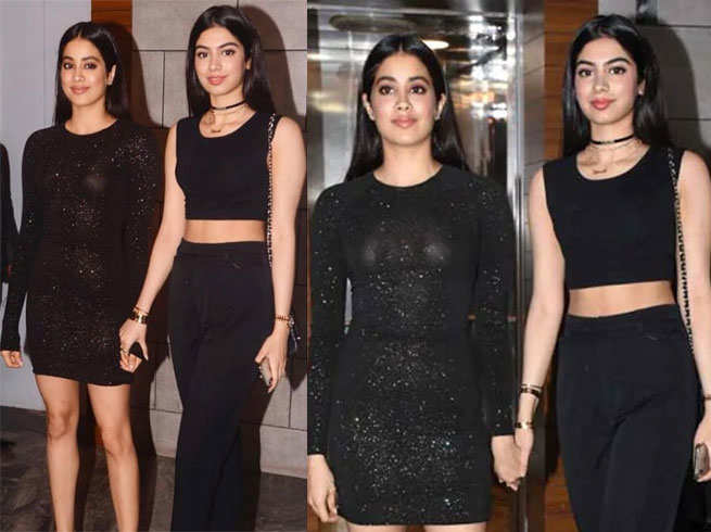 इसमें कोई शक नहीं कि जाह्नवी और खुशी, दोनों बहनों को एक जैसे रंग के कपड़े पहनना अच्छा लगता है। कुछ दिनों पहले एक पब्लिक अपियरेंस के दौरान जाह्नवी और खुशी दोनों नजर आईं ऑल ब्लैक लुक में। खुशी ने जहां ब्लैक पैंट्स के साथ ब्लैक स्लीवलेस क्रॉप टॉप पहन रखा था वहीं, जाह्नवी नजर आईं फुल स्लीव्स शिमरी LBD में।