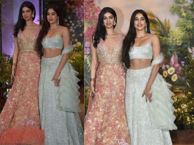 सिर्फ वेस्टर्न ड्रेसेज में ही नहीं बल्कि जाह्नवी और खुशी, दोनों बहनें ट्रडिशनल इंडियनवेअर में भी बेहद खूबसूरत लगती हैं। बहन सोनम कपूर की शादी के एक फंक्शन के दौरान जाह्नवी और खुशी दोनों नजर आईं मशहूर फैशन डिजाइनर मनीष मल्होत्रा द्वारा डिजाइन किए गए कपड़ों में। जाह्नवी ने जहां आइस ब्लू कलर का शिमरी लहंगा पहना था वहीं, खुशी ने पीच और पिंक कलर की लॉन्ग ड्रेस पहनी थी।