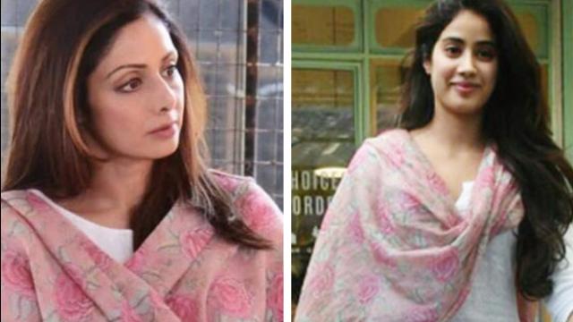 बॉलीवुड की नई एक्टर्स और श्रीदेवी की बेटी जाह्नवी कपूर की डेब्यू फिल्म धड़क में उनके लुक की तुलना कई बार श्रीदेवी के साथ की गई. कई फोटोस भी वायरल हुईं. लेकिन एक बार फिर जाह्नवी के लुक की तुलना दिवंगत एक्ट्रेस श्रीदेवी के लुक से हो रही है. इसकी वजह है, पिछले दिनों जाह्नवी कपूर श्रीदेवी के दुपट्टे को पहने नजर आईं. दोनों की तस्वीरें सोशल मीडीया पर छाई हुई हैं.