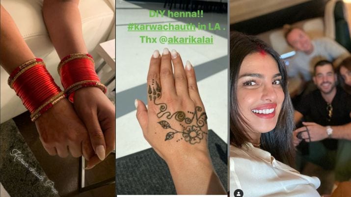 बॉलीवुड एक्ट्रेस प्रियंका चोपड़ा का शादी के बाद ये पहला करवा चौथ था। वो भले ही इंडिया से बाहर है, लेकिन वहां भी उन्होंने धूमधाम से ये फेस्टिवल सेलिब्रेट किया। प्रियंका चोपड़ा ने पहले अपनी मेहंदी और चूड़ी की तस्वीर शेयर की और बाद में पूरी तस्वीर शेयर करते हुए बताया कि जोनस ब्रदर्स के कॉन्सर्ट में उन्होंने पहला करवा चौथ सेलिब्रेट किया।