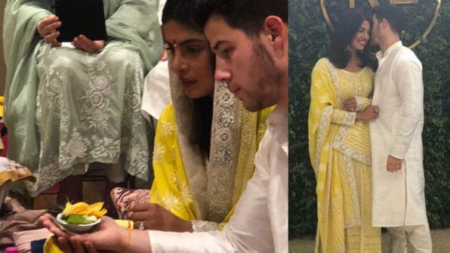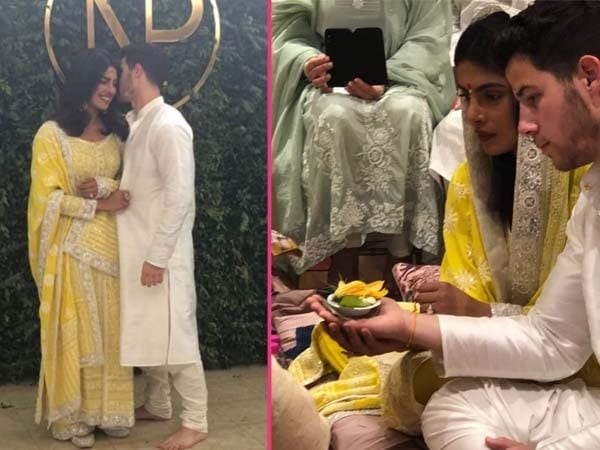 अभिनेत्री प्रियंका चोपड़ा और निक जोनस की रोका सेरेमनी हो चुकी है। प्रियंका और निक के फैंस लगातार इस सेरेमनी से जुड़ी खबर को जानने के लिए बेकरार थे और हर कोई जानना चाहता है कि आखिर अपने खास दिन पर प्रियंका क्या पहनने वाली है?अपनी रोका सेरेमनी के लिए प्रियंका और निक ट्रेडिशनल अवतार में नजर आए। बता दें कि सामने आई तस्वीर में प्रियंका पीले रंग के सूट और प्लाजो में नजर आ रही है तो वहीं निक सफेद रंग के कुर्ते और चुड़ीदार में दिख रहे है। नीचे देखें प्रियंका और निक की तस्वीरें…