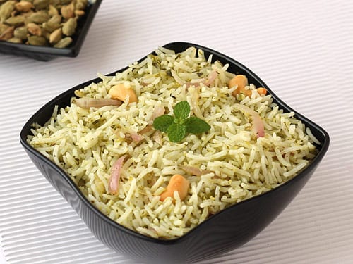 तैयार हैं पुदीना पुलाव. ऊपर से पुदीना और हरी धनिया पत्तियों से गार्निश करके गर्मागर्म सर्व करें.