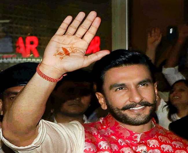 फिल्म अभिनेता रणवीर सिंह और दीपिका पादुकोण ने हाल ही में इटली के लेक कोमो में सिंधी और कोंकणी अंदाज में शादी की। इस मौके पर रणवीर सिंह ने उनके हाथ में मेहंदी भी लगवाई । खास बात यह है कि इस मेहंदी में उन्होंने हिंदी में दीपिका लिखवाया है और हाथ पर दीया बनवाया है।