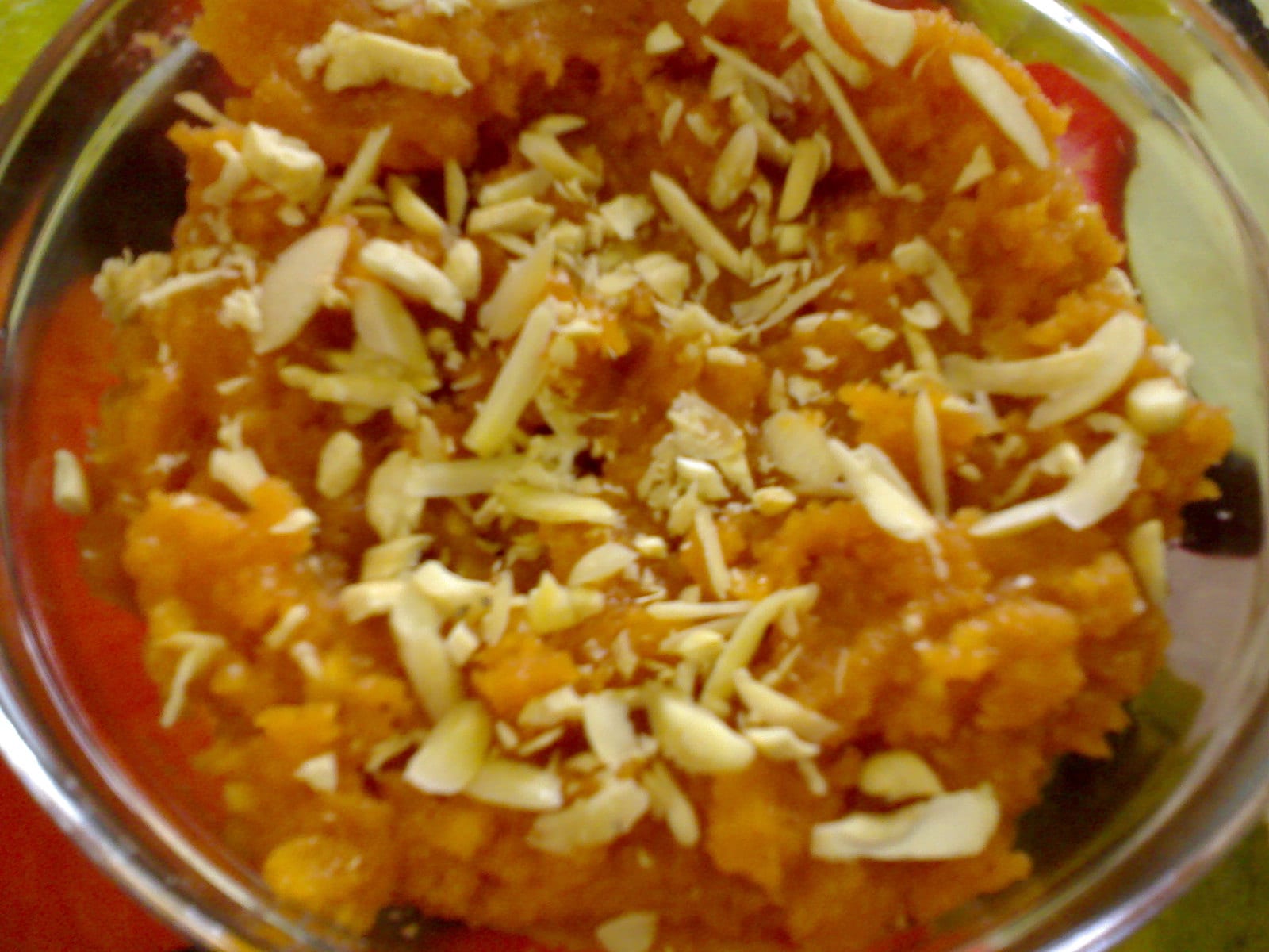 कटी हुई मेवा डाल दीजिये, हलवे को कलछी से चलाते हुये कड़ाही के किनारे छोड़ने तक पका लीजिये, आग बंद कर दीजिये, हलवे में घी और इलाइची पाउडर मिलाकर गर्मागर्म सर्व करें.