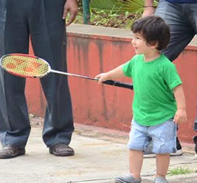 बैडमिंटन पकड़े हुए तैमूर का यह अंदाज़ वाकई काफी अलग सा था.