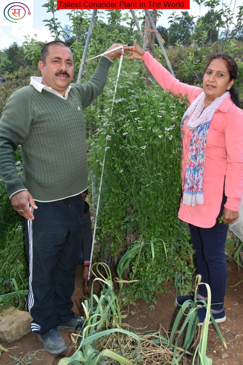 जीएस ऑर्गेनिक एप्पल फॉर्म विल्लेख, रानीखेत, उत्तराखंड (GS Organic Apple farm Billekh, Ranikhet, Uttarakhand) में धनिये की खास पैदावार हुई है जिसके वर्ल्ड रिकॉर्ड में नाम दर्ज होने की संभावना है. धनिये की इस जैविक पैदावार की खास बात यह है कि इसकी लंबाई 6फुट 1 इंच (185 सेंटीमीटर) से अधिक है जो अपने आप में एक वर्ल्ड रिकॉर्ड बनने जा रहा है. आमतौर पर धनिये की लंबाई 2 से 4 फुट तक देखी गयी है।