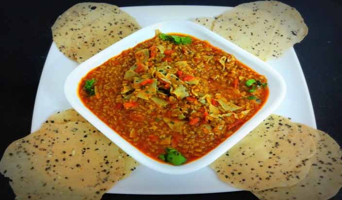 – इसके बाद तेल में मेथी दाने और पापड़ के छोटे-छोटे टुकड़ें डाल दें.
