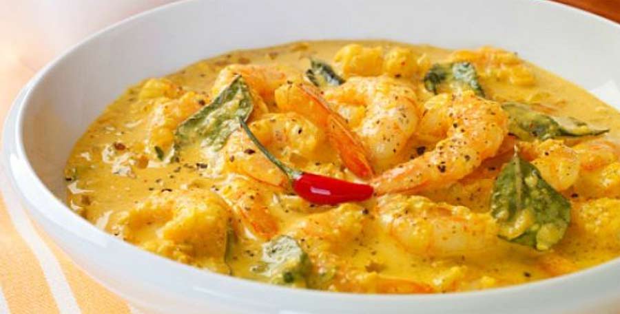 मलाबार प्रॉन्स करी तैयार है इसे चावल या मलाबार पराठे के साथ गर्मागर्म सर्व करें.