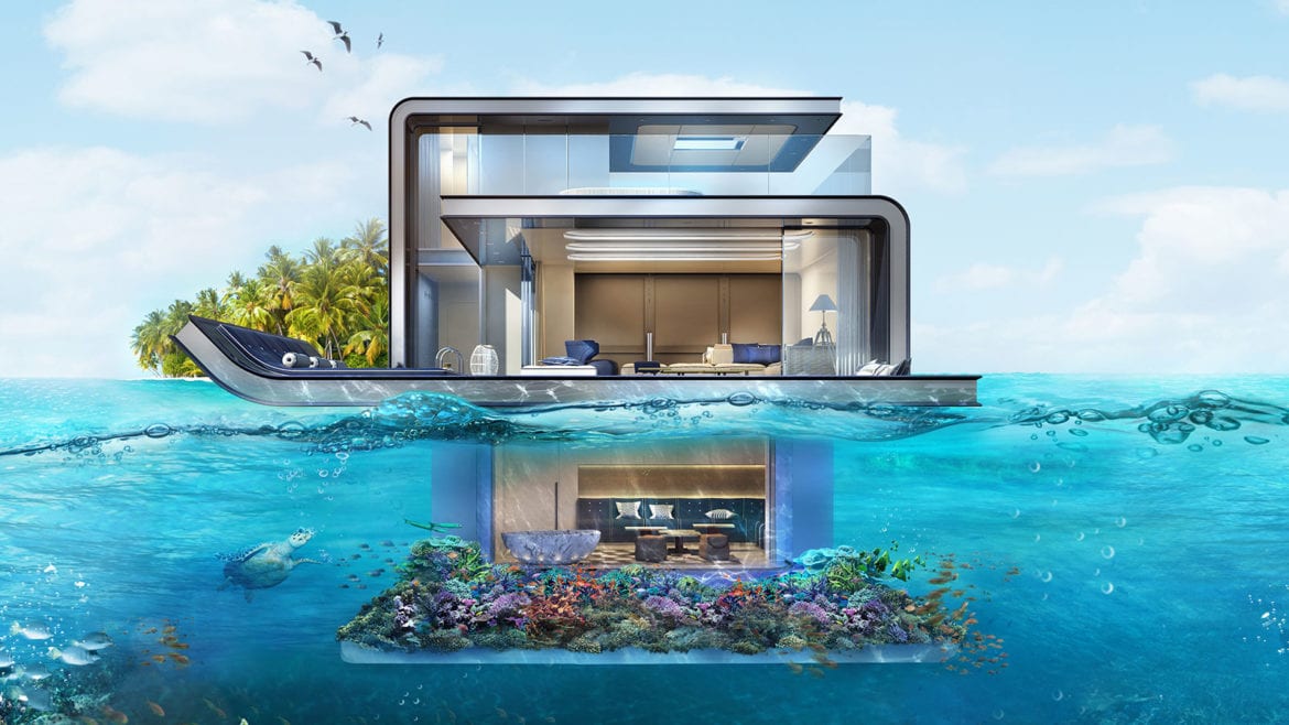 समुद्र में तैरता तीन मंजिला मकान