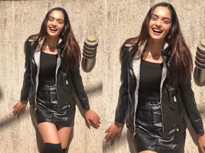 अगर आप भी नॉर्मल से कुछ अलग हटकर थोड़ा स्पोर्टी और सेक्सी लुक चाहती हैं तो मानुषी का यह बाइकर गर्ल लुक ट्राई कर सकती हैं। इसमें मानुषी ब्लैक कलर के लेदर जैकेट, ब्लैक कलर की लेदर शॉर्ट स्कर्ट, ब्लैक टॉप और ब्लैक कलर के नी लेंथ बूट्स में नजर आईं।