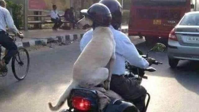 सड़क पर बाइक चलाता दिखा कुत्ता